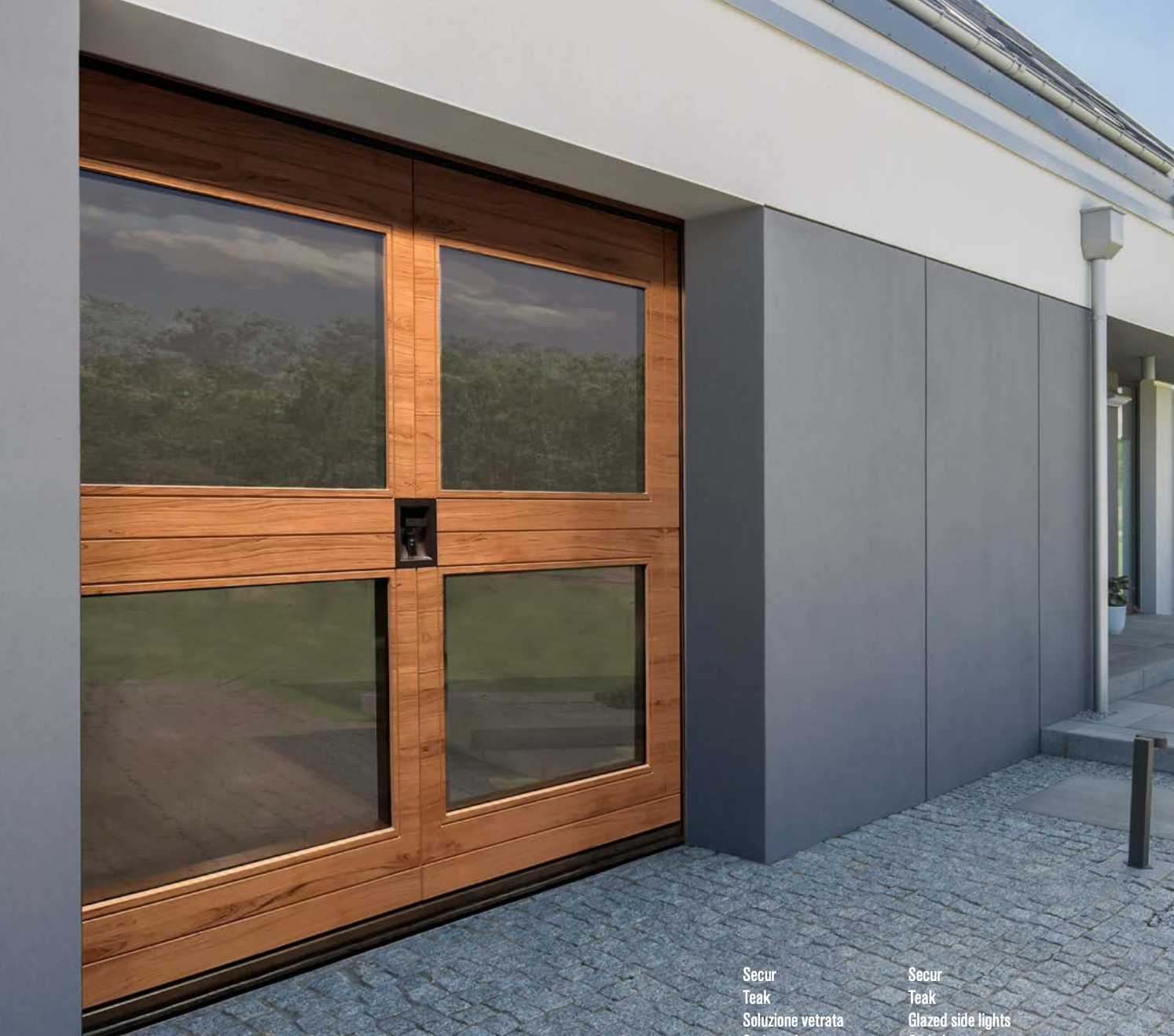 Gli accessori disponibili aggiungono altre funzioni: sopraluce, porta pedonale, motorizzazione, finestre, griglie di aerazione, maniglione antipanico per la porta pedonale, vano portalettere, sportello per l’uscita degli amici a 4 zampe, dispositivi di sicurezza supplementari e collegamenti all’impianto di allarme o di domotica.
