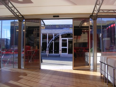 Siamo nel paddock di Ducati Corse: l’azienda italiana di Borgo Panigale, a Bologna, che da sempre vive da protagonista ogni stagione. Quest’anno Andrea Dovizioso ha già collezionato ben 3 podi e l’hospitality Ducati è sempre di più al centro dell’attenzione in ogni gara. Oramai siamo ai dettagli finali: il momento in cui, nell’ingresso della struttura hospitality, viene montata una porta automatica Valor di Ditec.